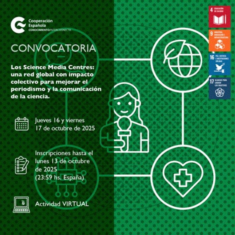 Celebramos un webinar virtual sobre la red global de Science Media Centres, una alianza internacional con impacto colectivo para mejorar el periodismo científico y la conversación social sobre la ciencia, la tecnología, la salud y el medio ambiente. Organizan FECYT y AECID en el marco del programa Intercoonecta.